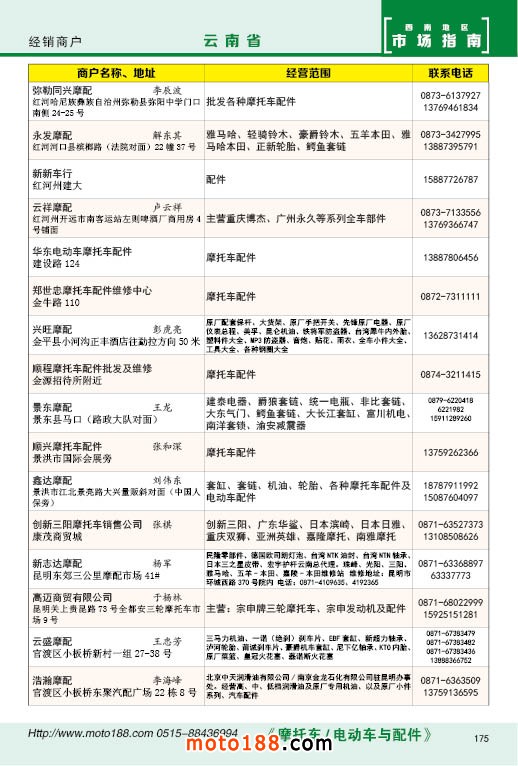 內(nèi)175 云南省摩托車配件經(jīng)銷商戶