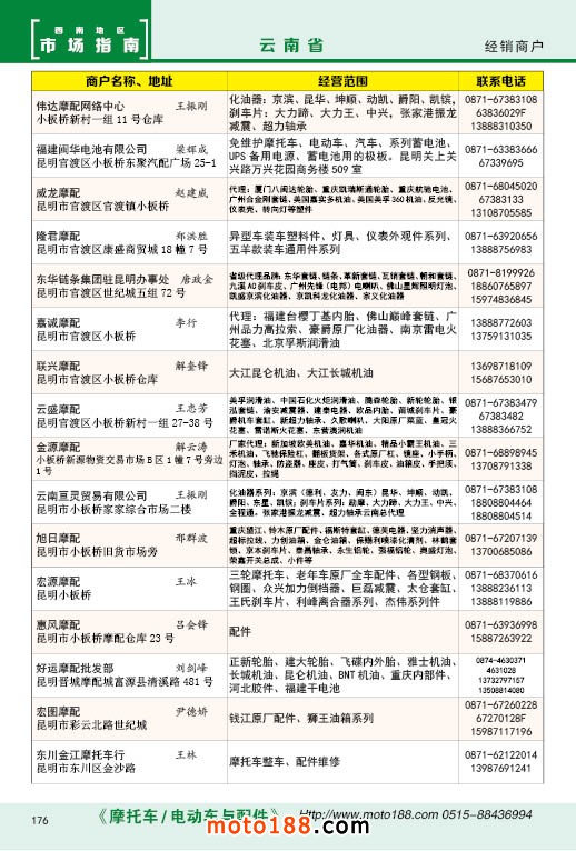 內(nèi)176 云南省摩托車配件經(jīng)銷商戶