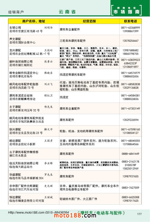 內(nèi)177 云南省摩托車配件經(jīng)銷商戶