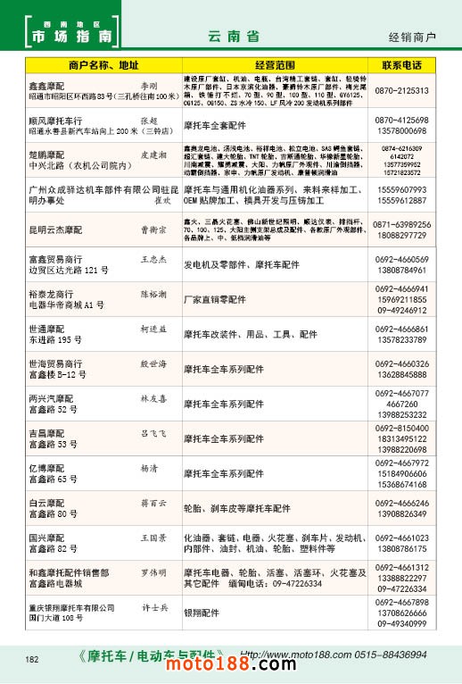 內(nèi)182 云南省摩托車(chē)配件經(jīng)銷(xiāo)商戶(hù)