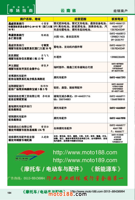 內(nèi)184 云南省摩托車配件經(jīng)銷商戶