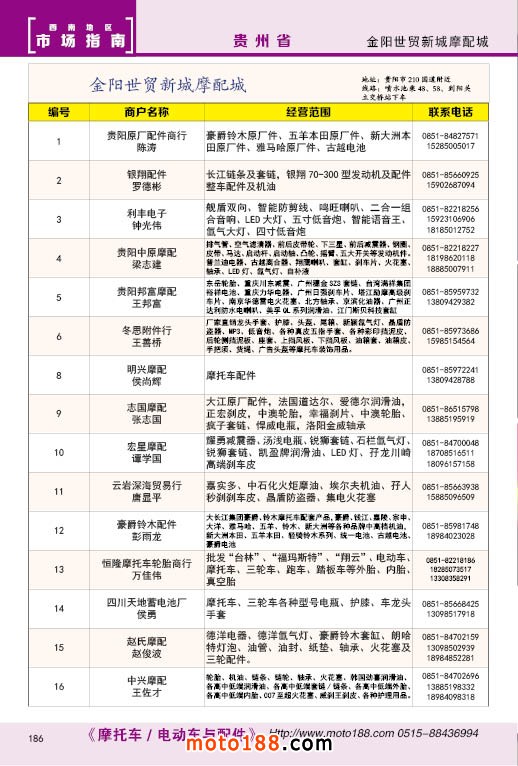 內(nèi)186 金陽世貿(mào)新城摩配城經(jīng)銷商名錄