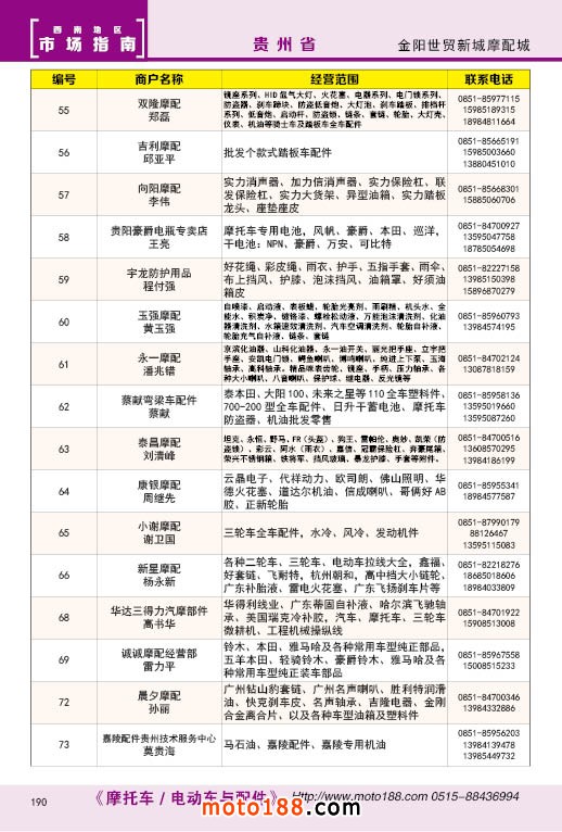 內(nèi)190 金陽世貿(mào)新城摩配城經(jīng)銷商名錄
