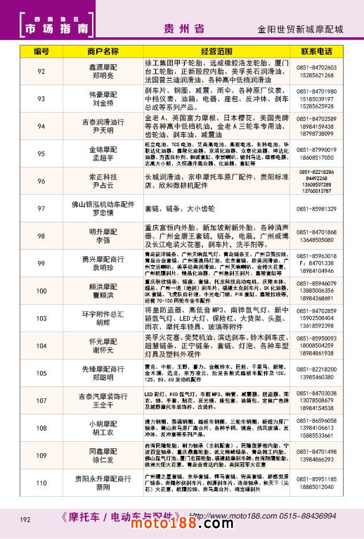 內(nèi)192 金陽世貿(mào)新城摩配城經(jīng)銷商名錄