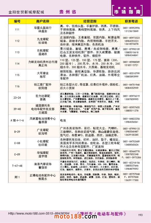 內(nèi)193 金陽(yáng)世貿(mào)新城摩配城經(jīng)銷商名錄