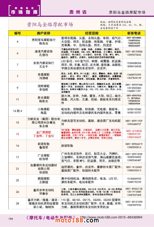 內(nèi)194 貴陽烏金路摩配市場經(jīng)銷商名錄