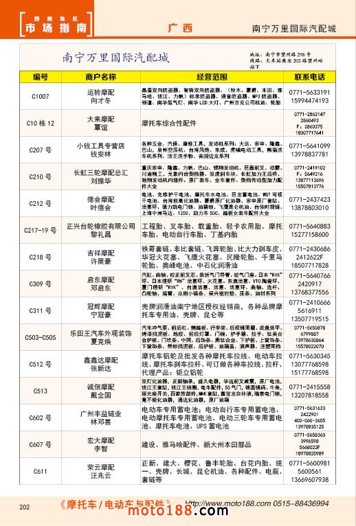 內(nèi)202 南寧萬里國際汽配城經(jīng)銷商名錄