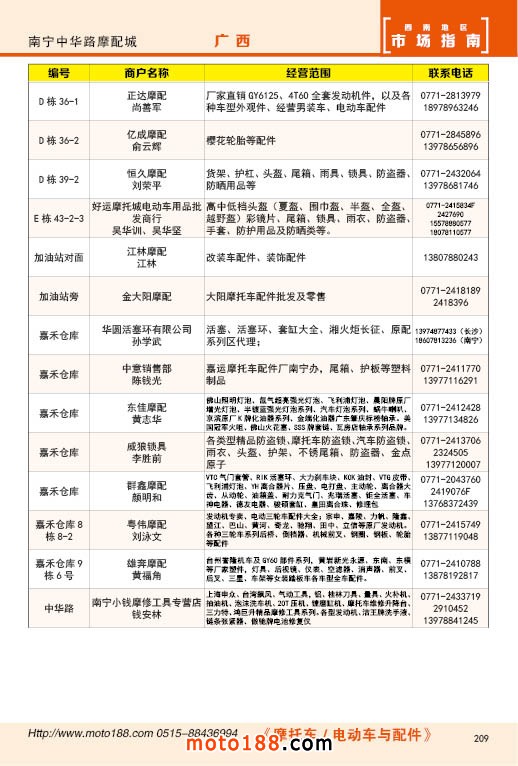 內(nèi)209 南寧中華路摩配市場經(jīng)銷商名錄