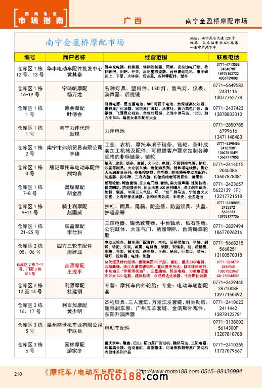 內(nèi)210 南寧金盈橋摩配市場經(jīng)銷商名錄
