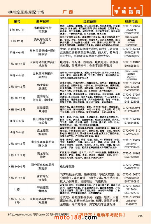 內(nèi)215 柳州市燎原路摩配市場經(jīng)銷商名錄