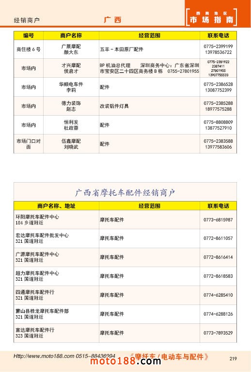 內(nèi)219 廣西摩托車配件經(jīng)銷商戶