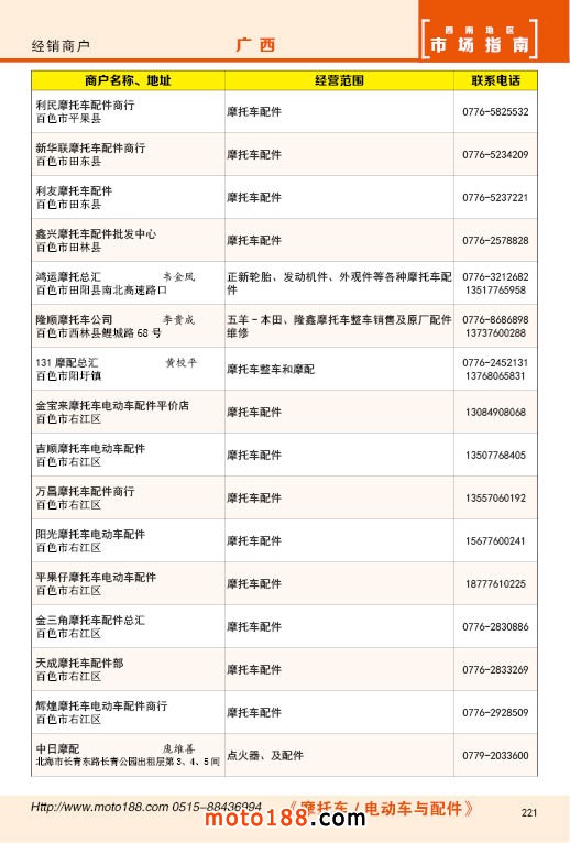 內(nèi)221 廣西摩托車配件經(jīng)銷商戶