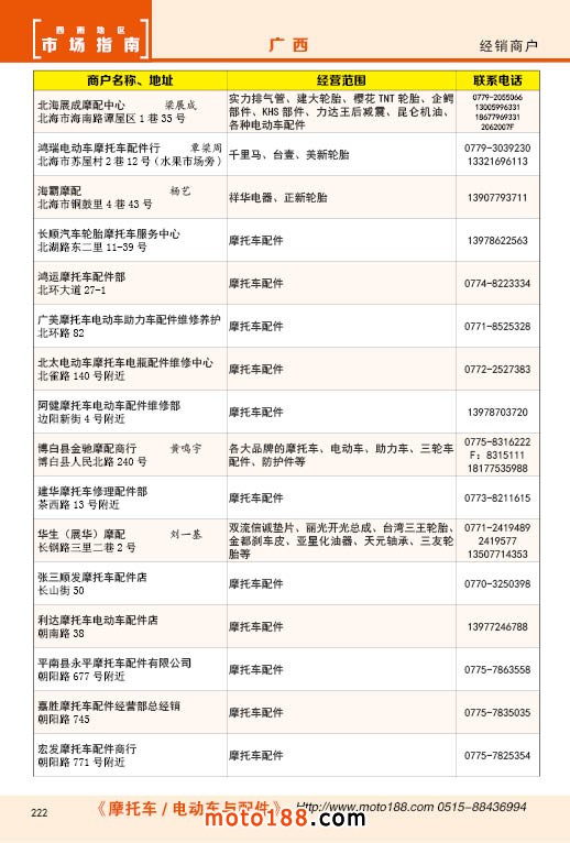 內(nèi)222 廣西摩托車配件經(jīng)銷商戶