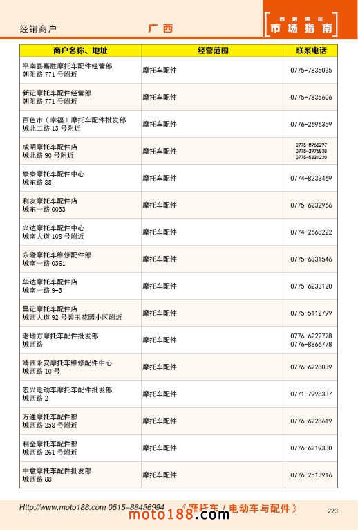 內(nèi)223 廣西摩托車(chē)配件經(jīng)銷(xiāo)商戶(hù)
