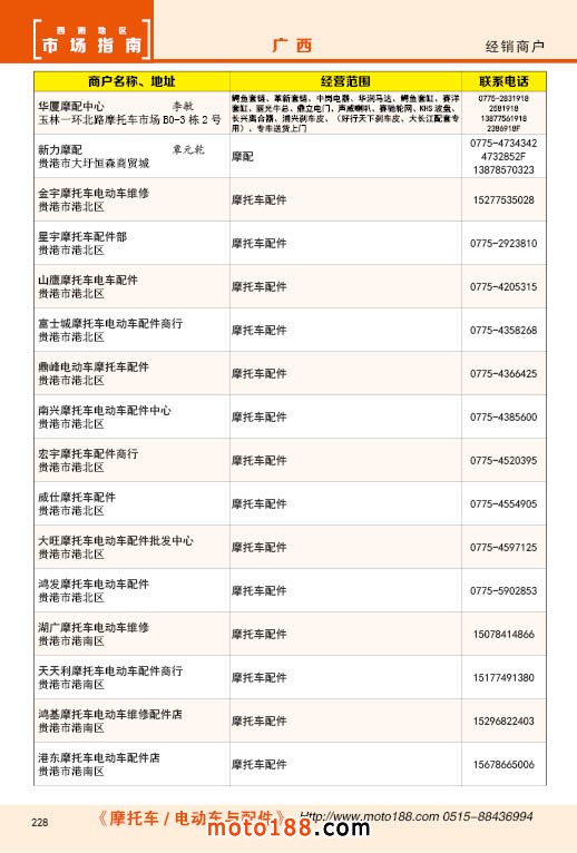 內(nèi)228 廣西摩托車配件經(jīng)銷商戶