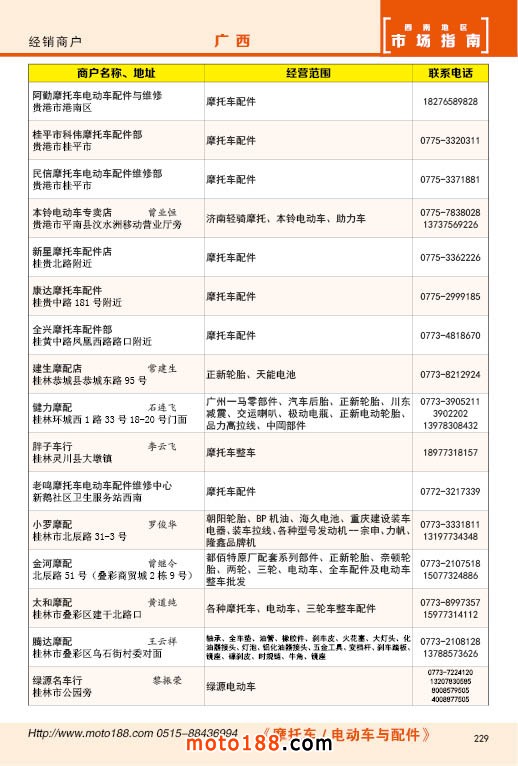 內(nèi)229 廣西摩托車配件經(jīng)銷商戶