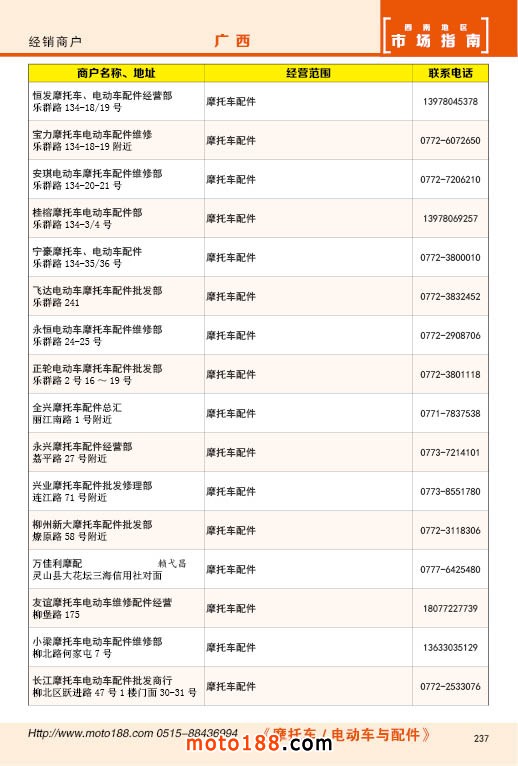 內(nèi)237 廣西摩托車配件經(jīng)銷商戶
