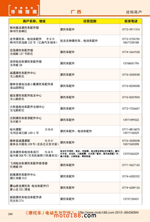 內(nèi)240 廣西摩托車配件經(jīng)銷商戶