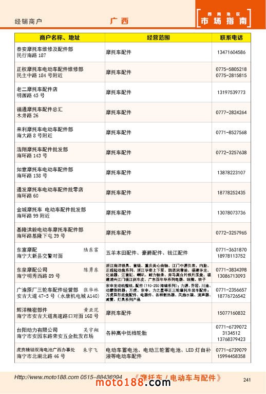 內(nèi)241 廣西摩托車配件經(jīng)銷商戶