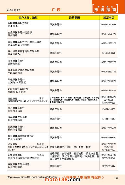 內(nèi)247 廣西摩托車配件經(jīng)銷商戶