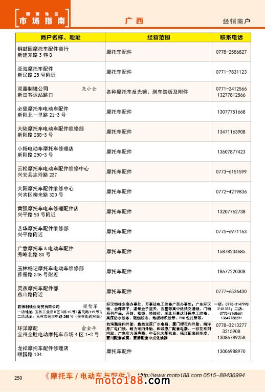 內(nèi)250 廣西摩托車配件經(jīng)銷商戶