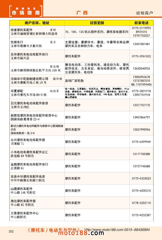 內(nèi)252 廣西摩托車(chē)配件經(jīng)銷商戶