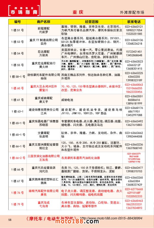內58 重慶外灘摩配市場經銷商名錄