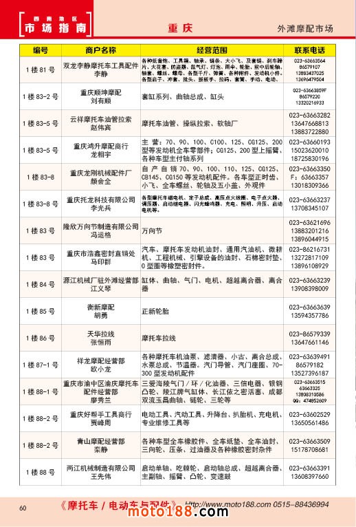 內(nèi)60 重慶外灘摩配市場(chǎng)經(jīng)銷商名錄