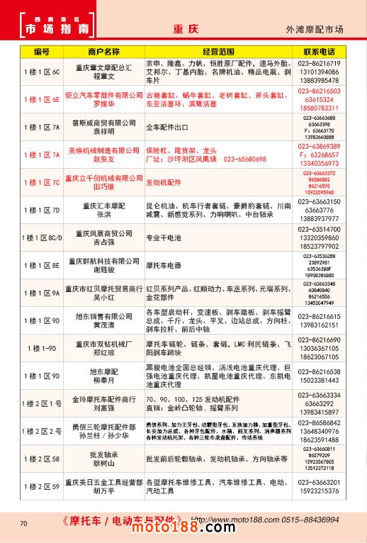 內(nèi)70 重慶外灘摩配市場經(jīng)銷商名錄