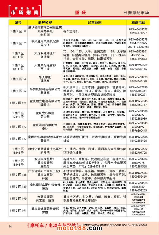 內(nèi)74 重慶外灘摩配市場(chǎng)經(jīng)銷商名錄