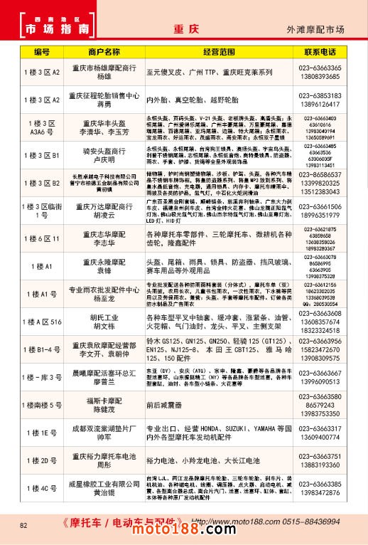 內(nèi)82 重慶外灘摩配市場經(jīng)銷商名錄