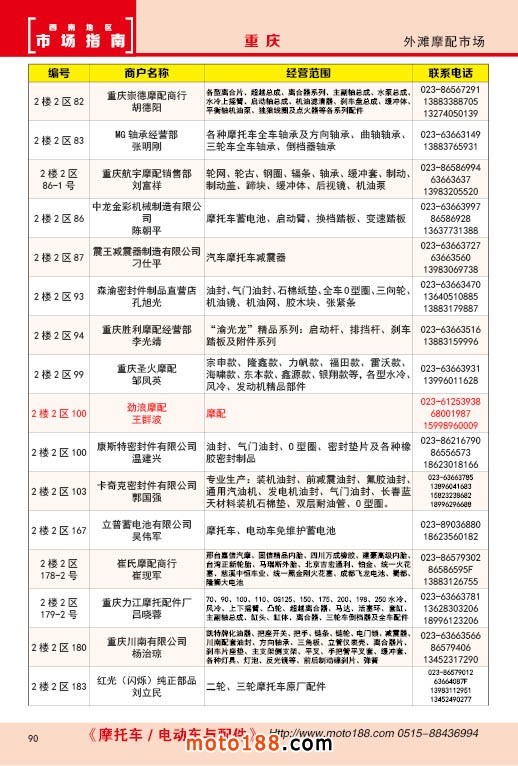 內(nèi)90 重慶外灘摩配市場經(jīng)銷商名錄