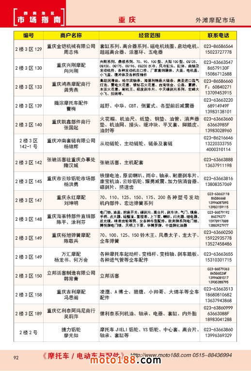 內(nèi)92 重慶外灘摩配市場經(jīng)銷商名錄