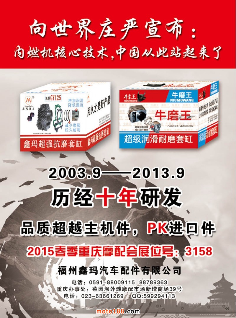 今年第四期雜志雖然在全國市場都有發(fā)行,一些不在市場的地區(qū)商戶除了通過www.moto188.com網(wǎng)站閱讀,也可到我們展位直接領(lǐng)取。由于本期雜志需要宣傳的企業(yè)較多,原來的摩托車及電動(dòng)車行業(yè)的資訊的內(nèi)容,順延到下一期發(fā)布。