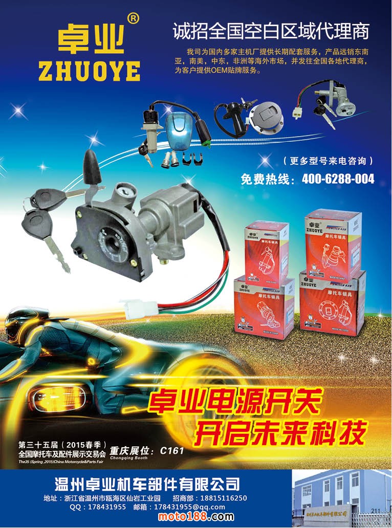 今年第四期雜志雖然在全國(guó)市場(chǎng)都有發(fā)行,一些不在市場(chǎng)的地區(qū)商戶除了通過(guò)www.moto188.com網(wǎng)站閱讀,也可到我們展位直接領(lǐng)取。由于本期雜志需要宣傳的企業(yè)較多,原來(lái)的摩托車及電動(dòng)車行業(yè)的資訊的內(nèi)容,順延到下一期發(fā)布。