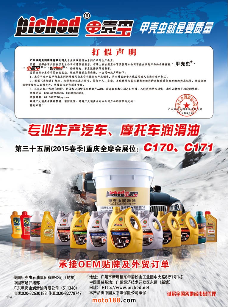 今年第四期雜志雖然在全國市場都有發(fā)行,一些不在市場的地區(qū)商戶除了通過www.moto188.com網(wǎng)站閱讀,也可到我們展位直接領(lǐng)取。由于本期雜志需要宣傳的企業(yè)較多,原來的摩托車及電動車行業(yè)的資訊的內(nèi)容,順延到下一期發(fā)布。