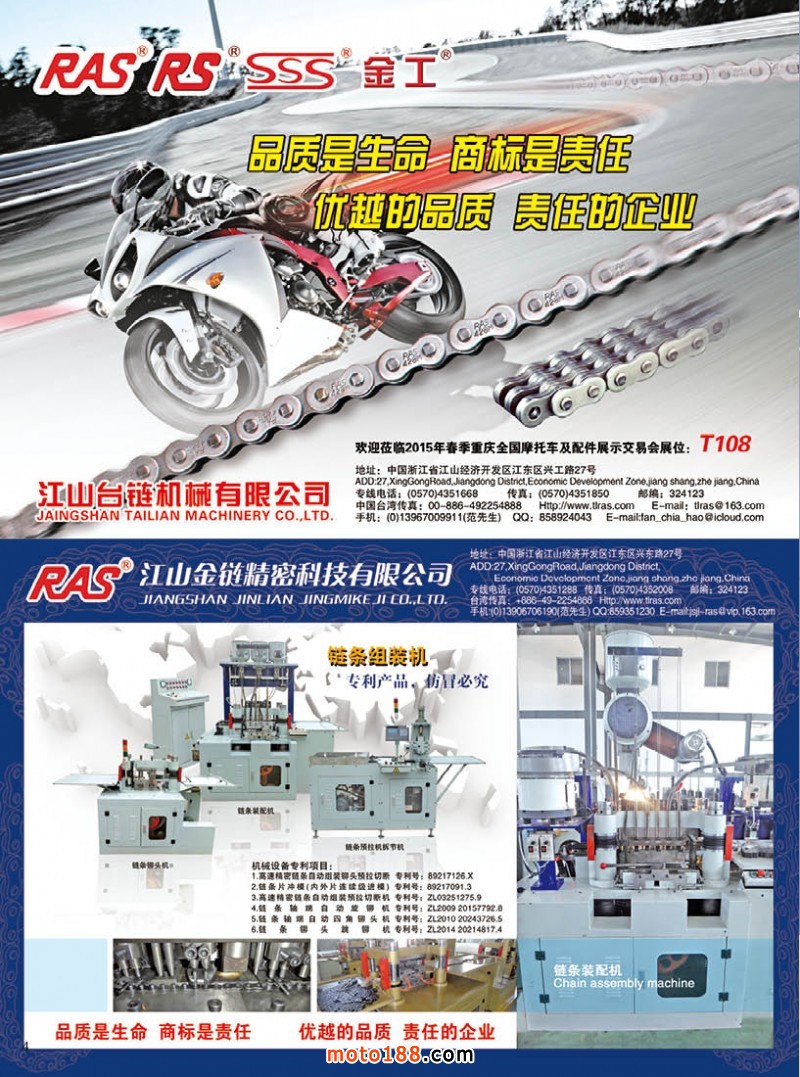 今年第四期雜志雖然在全國市場都有發(fā)行,一些不在市場的地區(qū)商戶除了通過www.moto188.com網(wǎng)站閱讀,也可到我們展位直接領(lǐng)取。由于本期雜志需要宣傳的企業(yè)較多,原來的摩托車及電動(dòng)車行業(yè)的資訊的內(nèi)容,順延到下一期發(fā)布。