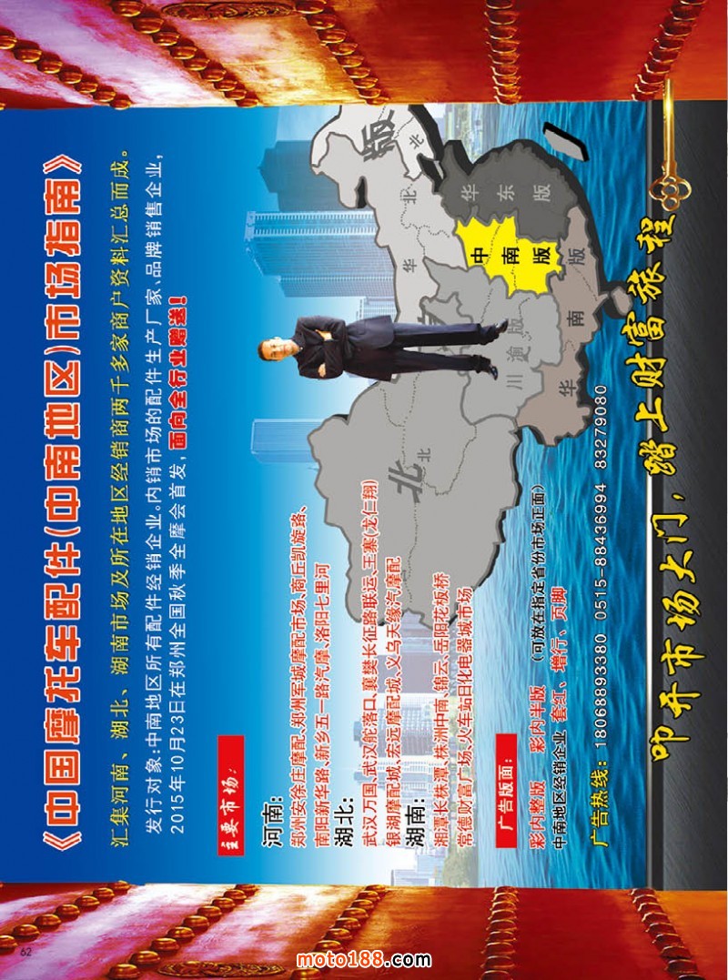 今年第四期雜志雖然在全國市場都有發(fā)行,一些不在市場的地區(qū)商戶除了通過www.moto188.com網站閱讀,也可到我們展位直接領取。由于本期雜志需要宣傳的企業(yè)較多,原來的摩托車及電動車行業(yè)的資訊的內容,順延到下一期發(fā)布。