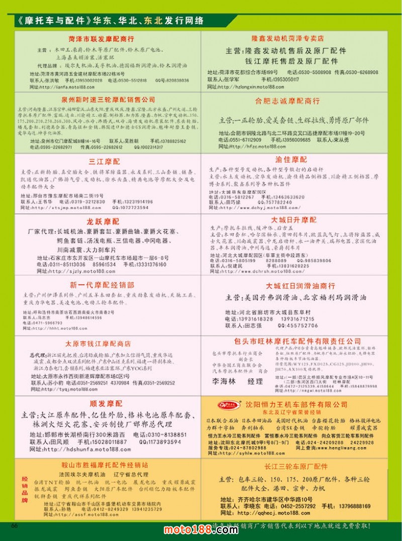 今年第四期雜志雖然在全國市場都有發(fā)行,一些不在市場的地區(qū)商戶除了通過www.moto188.com網(wǎng)站閱讀,也可到我們展位直接領(lǐng)取。由于本期雜志需要宣傳的企業(yè)較多,原來的摩托車及電動車行業(yè)的資訊的內(nèi)容,順延到下一期發(fā)布。
