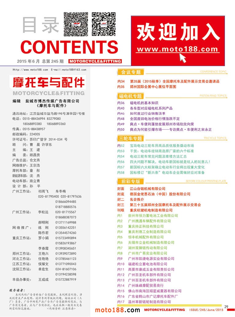 為了感謝行業(yè)同仁的支持和信任,今年初編輯《電動車大數(shù)據(jù)》一套兩本的電動車數(shù)據(jù)庫工具書,將贈送給今年在我們雜志和書上做廣告宣傳的企業(yè),我們在各個市場的發(fā)行代理,有既經(jīng)營摩托車又做電動車配件的企業(yè)請和我們聯(lián)系,我們安排發(fā)送。