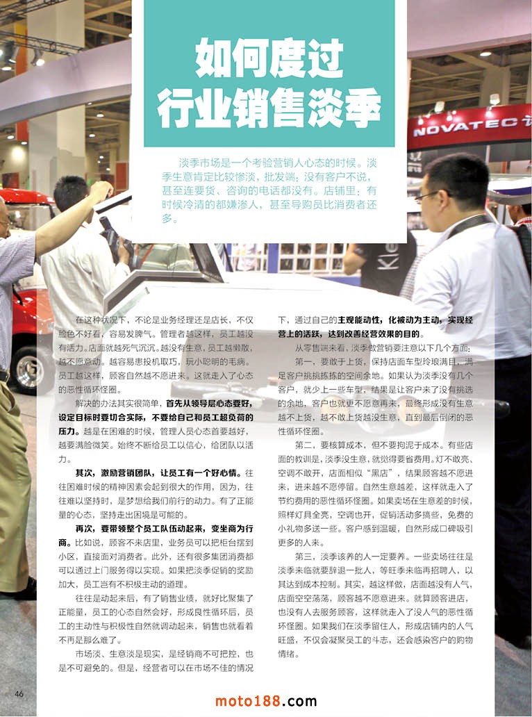 隨著春季全摩會的結束,我們下半年的工作也在緊張的實施之中,在鄭州秋季全摩會首發(fā)的《中南地區(qū)市場指南》正在緊張的編纂之中。在日益浮躁的虛擬經濟發(fā)酵冒泡之際,我們守著一份寧靜幾許淡然,走訪了中南地區(qū)(河南、湖南、湖北)許多大大小小的市場,做好發(fā)行,收集資料,調研市場。通過對一線市場的接觸,我們既看到不少市場外表荒蕪,但還有不少老板和我們一樣不離不棄,堅守在這不被人所重視的行業(yè)。有的一直在堅持只做摩配,有的兼而電動車配件,有的通過網(wǎng)上貿易,有的深入鄉(xiāng)村送貨上門……讓我們好生感慨:青山依舊在,幾度夕陽紅。讓人寬慰的是,這里有不少企業(yè)還做得相當不錯,他們低調而務實,長期的市場調整,在實體百業(yè)低迷的狀況下,我們這些摩配企業(yè)堅定者,淡泊而寧靜,守望著心中的桃花源。