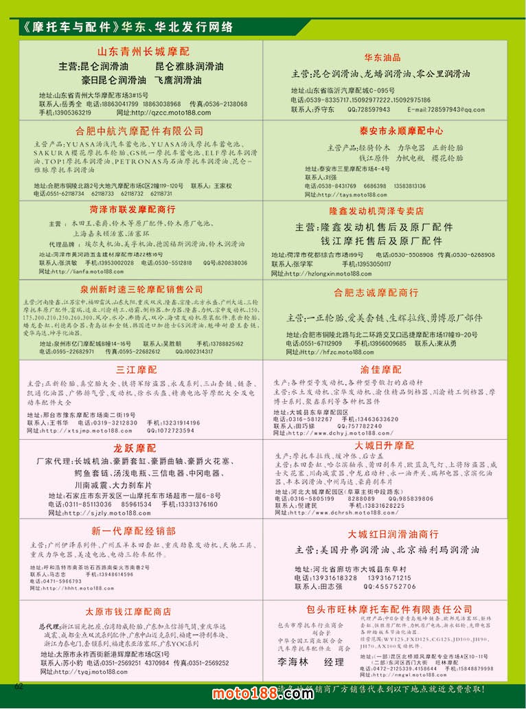 隨著春季全摩會的結束,我們下半年的工作也在緊張的實施之中,在鄭州秋季全摩會首發(fā)的《中南地區(qū)市場指南》正在緊張的編纂之中。在日益浮躁的虛擬經濟發(fā)酵冒泡之際,我們守著一份寧靜幾許淡然,走訪了中南地區(qū)(河南、湖南、湖北)許多大大小小的市場,做好發(fā)行,收集資料,調研市場。通過對一線市場的接觸,我們既看到不少市場外表荒蕪,但還有不少老板和我們一樣不離不棄,堅守在這不被人所重視的行業(yè)。有的一直在堅持只做摩配,有的兼而電動車配件,有的通過網(wǎng)上貿易,有的深入鄉(xiāng)村送貨上門……讓我們好生感慨:青山依舊在,幾度夕陽紅。讓人寬慰的是,這里有不少企業(yè)還做得相當不錯,他們低調而務實,長期的市場調整,在實體百業(yè)低迷的狀況下,我們這些摩配企業(yè)堅定者,淡泊而寧靜,守望著心中的桃花源。