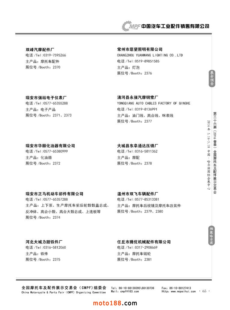 各摩配市場(chǎng)詳細(xì)資料請(qǐng)注冊(cè)我們的VIP會(huì)員咨詢 電話:0515-88436994 QQ:309362965、842467029、1051652573