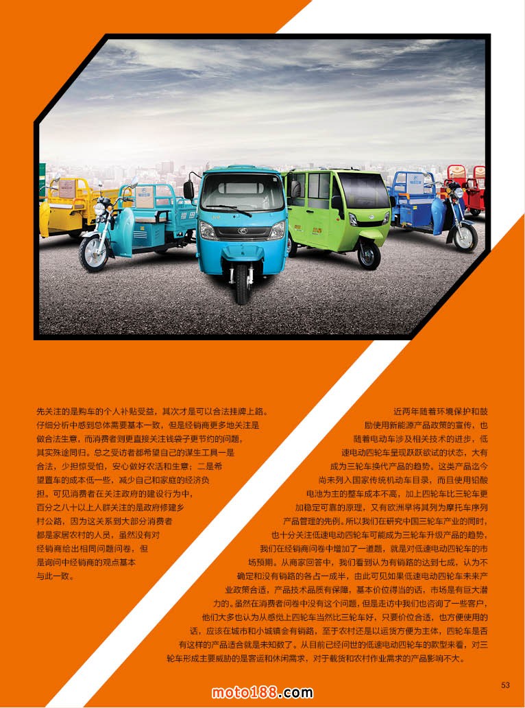 為了努力貼近市場(chǎng),我們根據(jù)市場(chǎng)的變化,調(diào)整我們雜志的部分欄目,從今年后二期雜志中,我們將作部分的嘗試:主角依然是《摩托車與配件》,通機(jī)部分內(nèi)容和信息將不再選登;電動(dòng)二輪車是單獨(dú)市場(chǎng),已經(jīng)非常成熟,我們不去涉足;明年雜志將增加三輪和四輪電動(dòng)車的內(nèi)容,我們?cè)瓉?lái)的《新能源車》將主要以報(bào)道高速(100km/s)上公告目錄內(nèi)的車型,以及和車輛有關(guān)的充電樁、鋰電池、電機(jī)等信息。今年十一期開(kāi)始,嘗試登載部分信息內(nèi)容,聽(tīng)聽(tīng)市場(chǎng)的反應(yīng)。