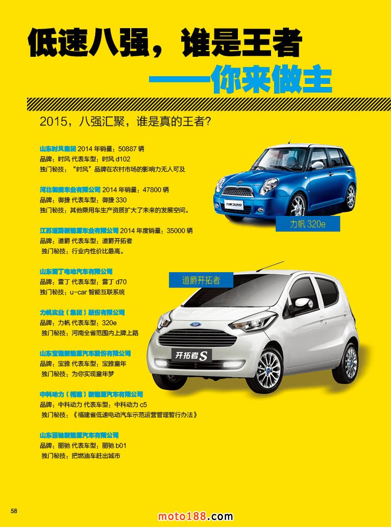 為了努力貼近市場,我們根據(jù)市場的變化,調(diào)整我們雜志的部分欄目,從今年后二期雜志中,我們將作部分的嘗試:主角依然是《摩托車與配件》,通機(jī)部分內(nèi)容和信息將不再選登;電動二輪車是單獨(dú)市場,已經(jīng)非常成熟,我們不去涉足;明年雜志將增加三輪和四輪電動車的內(nèi)容,我們原來的《新能源車》將主要以報道高速(100km/s)上公告目錄內(nèi)的車型,以及和車輛有關(guān)的充電樁、鋰電池、電機(jī)等信息。今年十一期開始,嘗試登載部分信息內(nèi)容,聽聽市場的反應(yīng)。