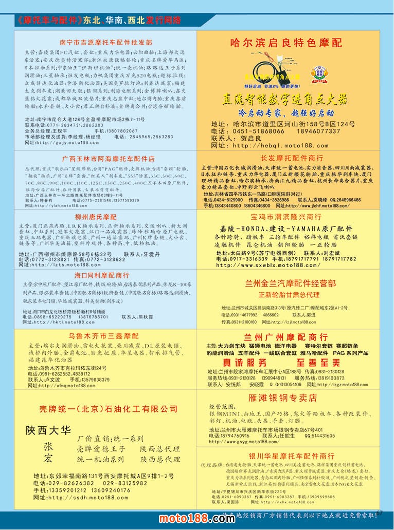 明年的中國經(jīng)濟會如何?可能連國家領導人都無法預測,但作為我們應該未雨綢繆做好應對市場的變化,我們加強和完善了對市場發(fā)行的工作,調(diào)整了工作重點,有計劃有目的的開展各項工作,在廣州市場增加了發(fā)行力量,安排專人每期上門投放。今冬明春我們還將完成對華北和東北市場的信息采集工作,明年春天的《北方市場指南》,將在哈爾濱春季全摩會會上發(fā)放,這本書完成后,這一個系列即第二次升級版也全部完成了。