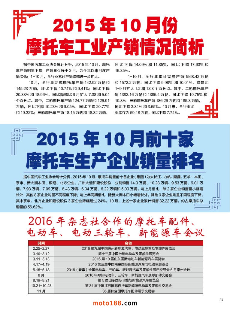 內(nèi)37 2015年10月份摩托車工業(yè)產(chǎn)銷情況簡析
