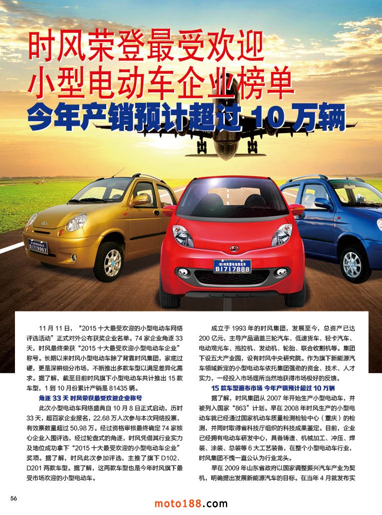 內(nèi)56 時風榮登最受歡迎小型電動車企業(yè)榜單今年產(chǎn)銷預計超過10萬輛