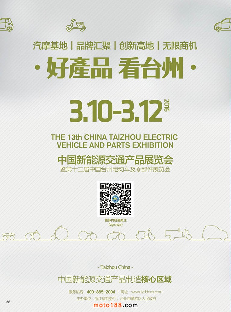 內(nèi)58 第十三屆中國(guó)臺(tái)州電動(dòng)車及零部件展覽會(huì)