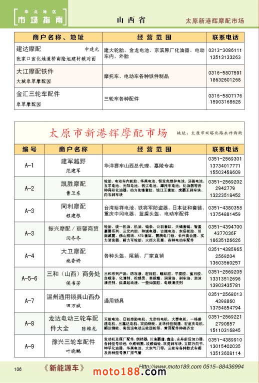 中國摩配市場從上世紀九十年代開始經(jīng)過高速度的發(fā)展,正逐步減速,摩托車行業(yè)也漸呈式微,與之緊密相關(guān)的后市場的配件與維修也呈逐步下滑之勢,取代摩托車的在發(fā)達地區(qū)是汽車,欠發(fā)達地區(qū)是電動兩輪、電動三輪,甚至電動四輪車,隨著經(jīng)濟的發(fā)展,出行的多樣化,也給了消費者多重的選擇。目前現(xiàn)有的摩托車及配件市場,也不再是以純摩托車為主體,有的市場電動車取代了摩托車,有的商店也是混合經(jīng)營,這些變化在《市場指南》里面都有所反應(yīng)。這次《北方指南》一些小市場不再單列,并入到相應(yīng)的省份中去;以前去市場的公交線路,書中也不再列入,因為現(xiàn)在的地圖導(dǎo)航功能十分強大,既新又準。